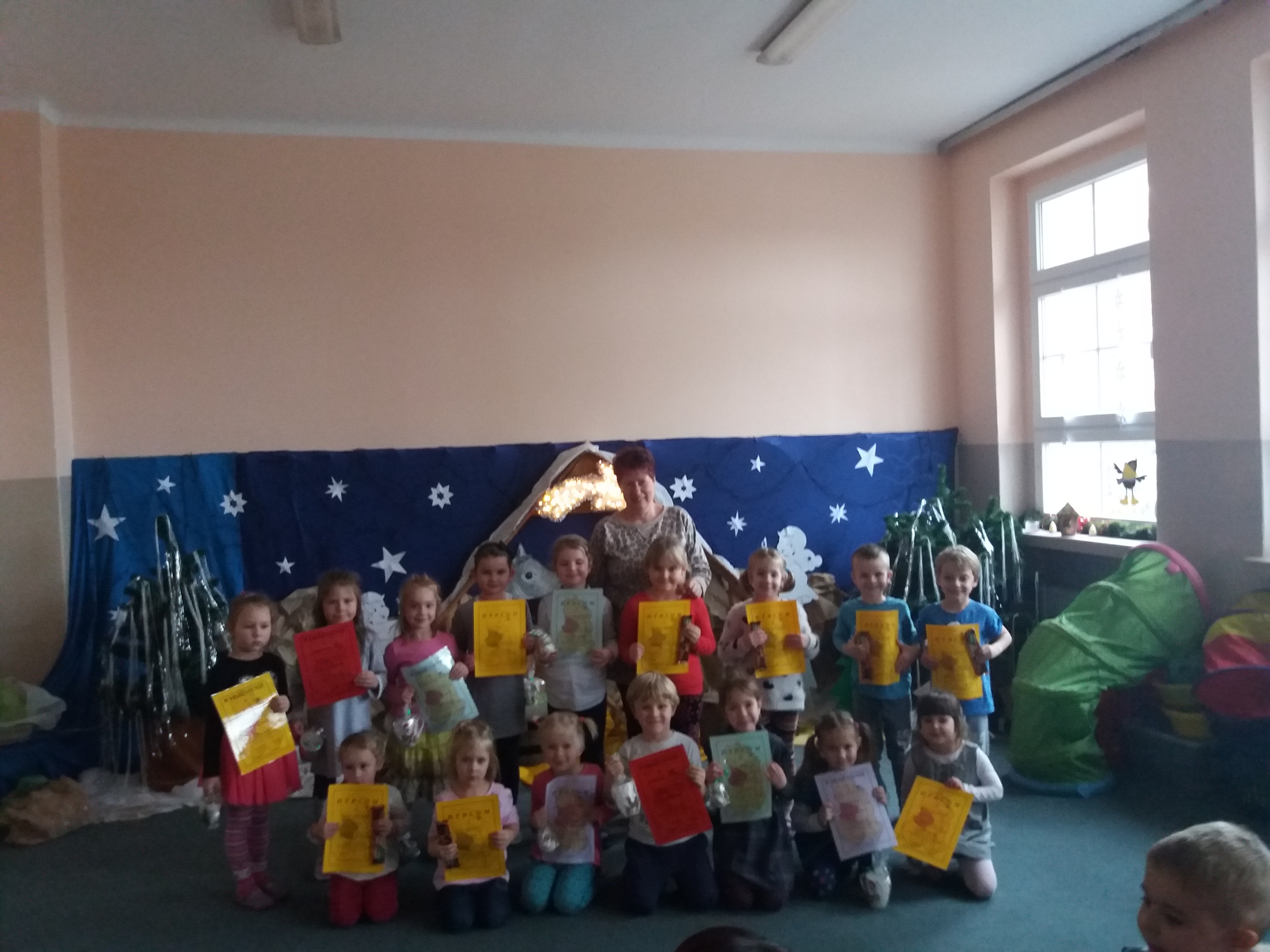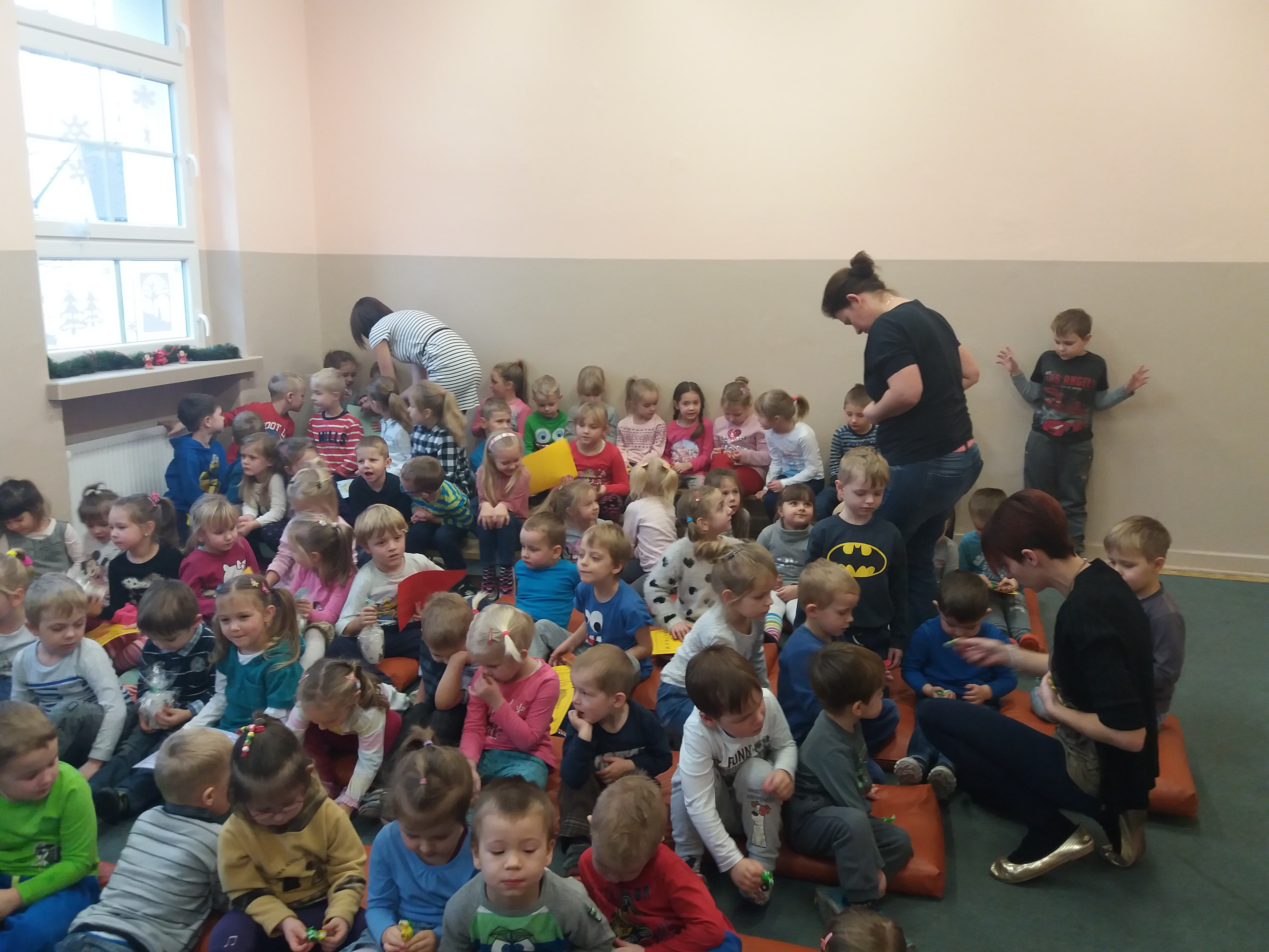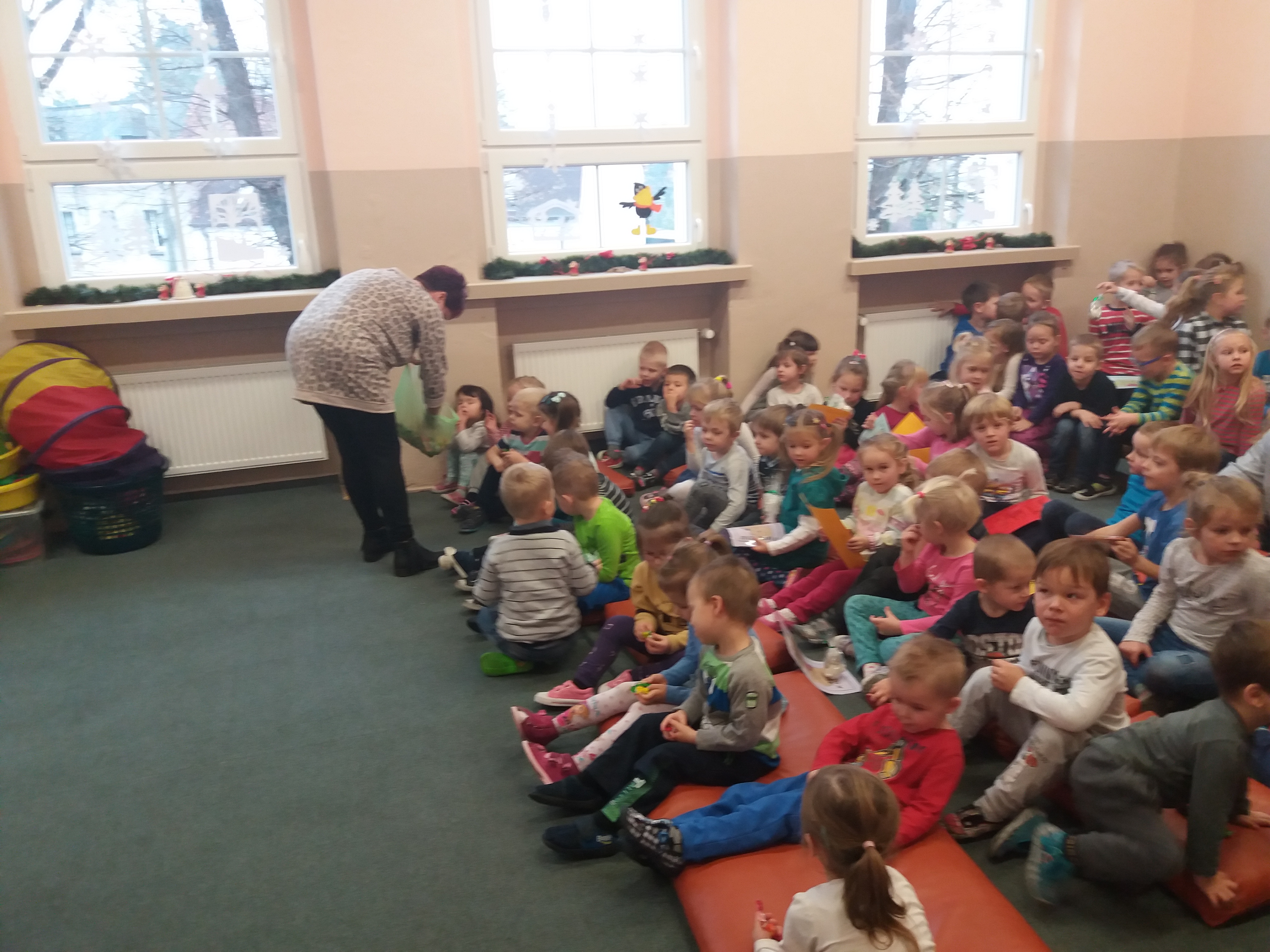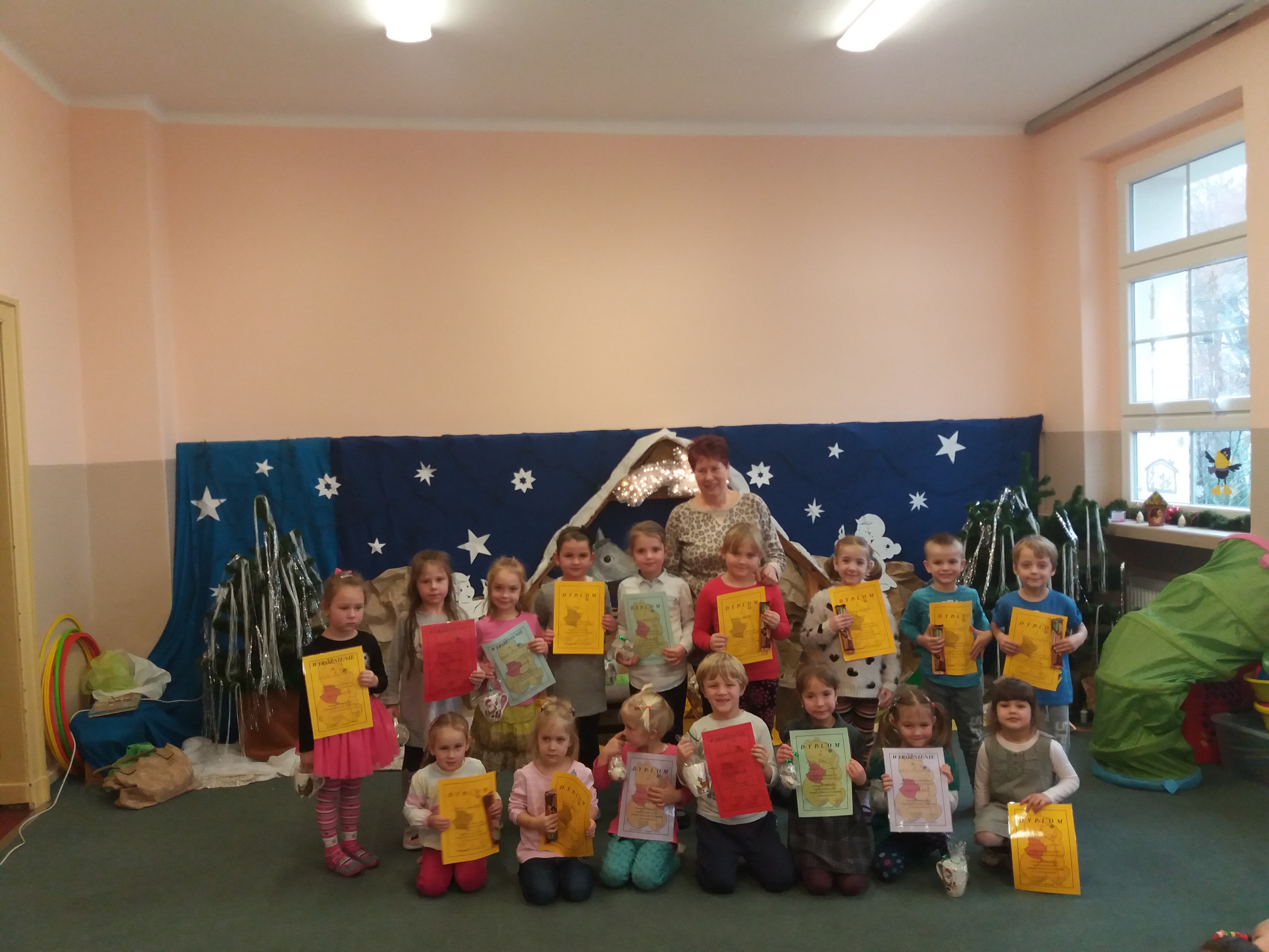 W ramach naszej akcji ,, Poczytaj mi…”, 16 grudnia, odwiedziła przedszkolaków p. Sylwia Hofrichter- kierownik Gminnej Biblioteki Publicznej. Zachęciła dzieci do czytania i korzystania ze zbiorów biblioteki czytając im piękną świąteczną opowieść. Później wręczyła dzieciom, które brały udział w Ogólnopolskim Konkursie Plastycznym,, Kubuś Puchatek i inne misie”, nagrody, dyplomy i drobne słodkości .