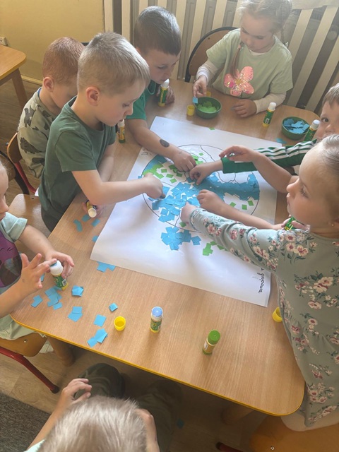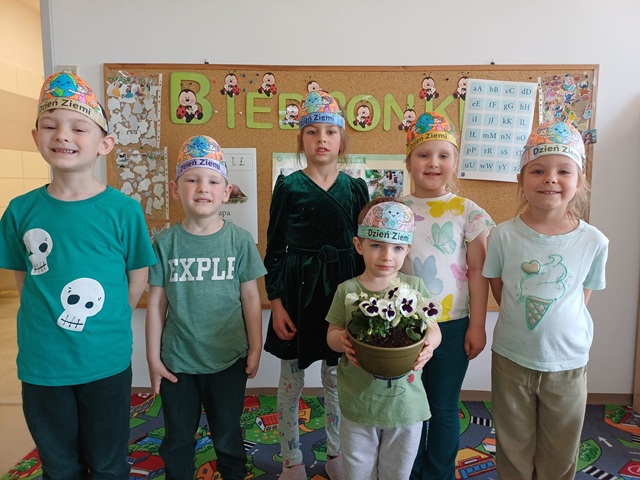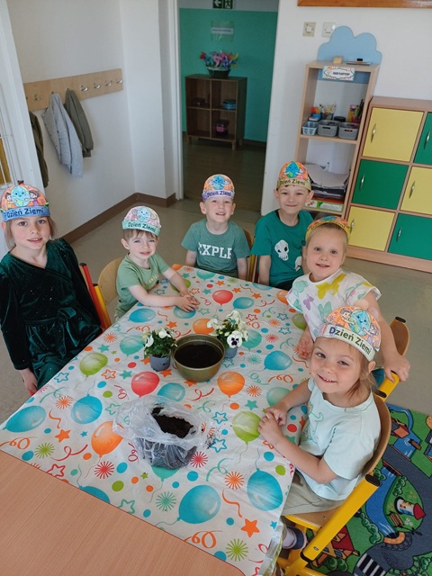 Dzieci z ogromnym zaangażowaniem uczestniczyły w zajęciach i zabawach związanych z naszą planetą. Rozmawialiśmy o tym, jak dbać o środowisko, dlaczego przyroda jest tak ważna oraz co każdy z nas – nawet najmniejszy – może zrobić, aby chronić Ziemię.Nie zabrakło również twórczych działań – każde dziecko przygotowało własną, zieloną opaskę na głowę, którą z dumą założyło podczas wspólnego spaceru. Było kolorowo, wesoło i bardzo inspirująco!