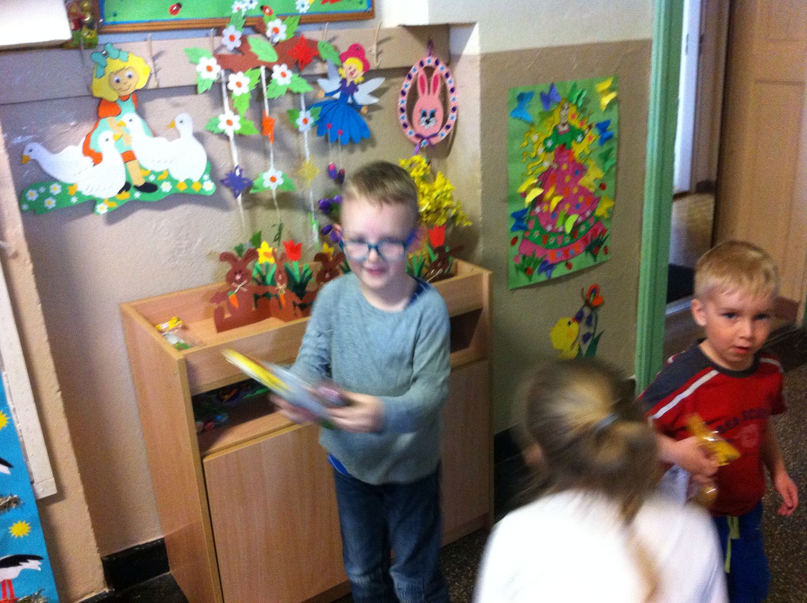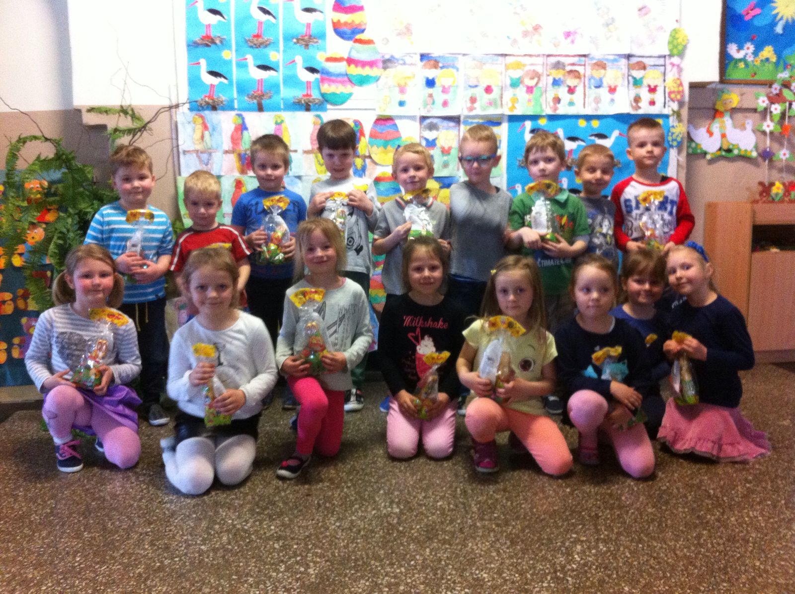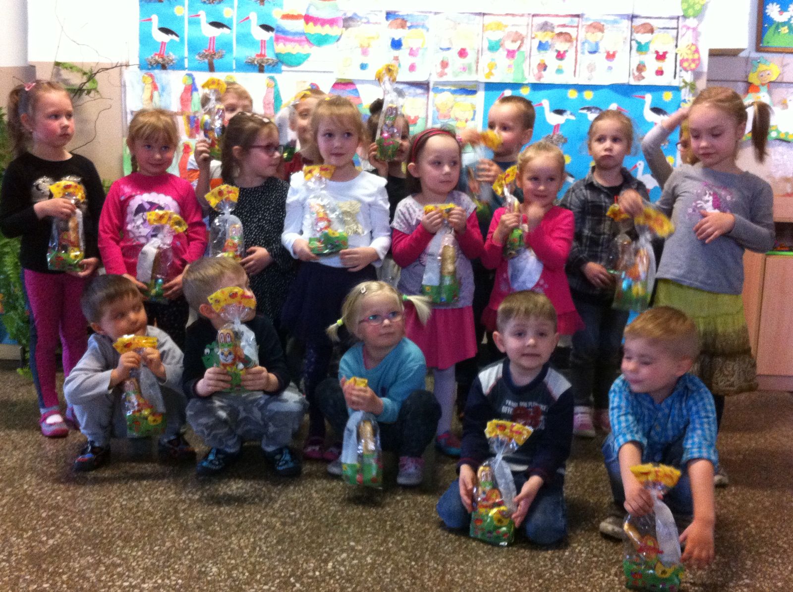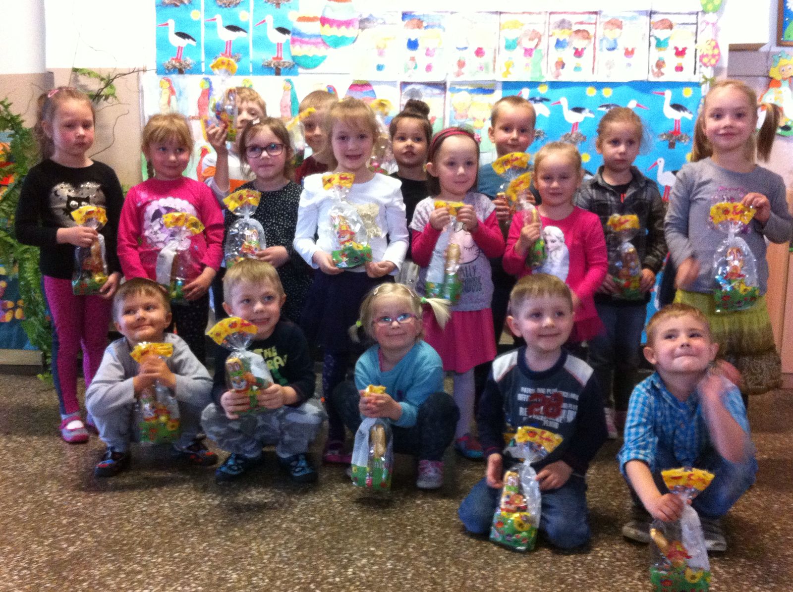 Ze względu na chłodną, deszczową pogodę tegoroczne poszukiwania odbyły się na przedszkolnych korytarzach, było mnóstwo emocji i zabawy.