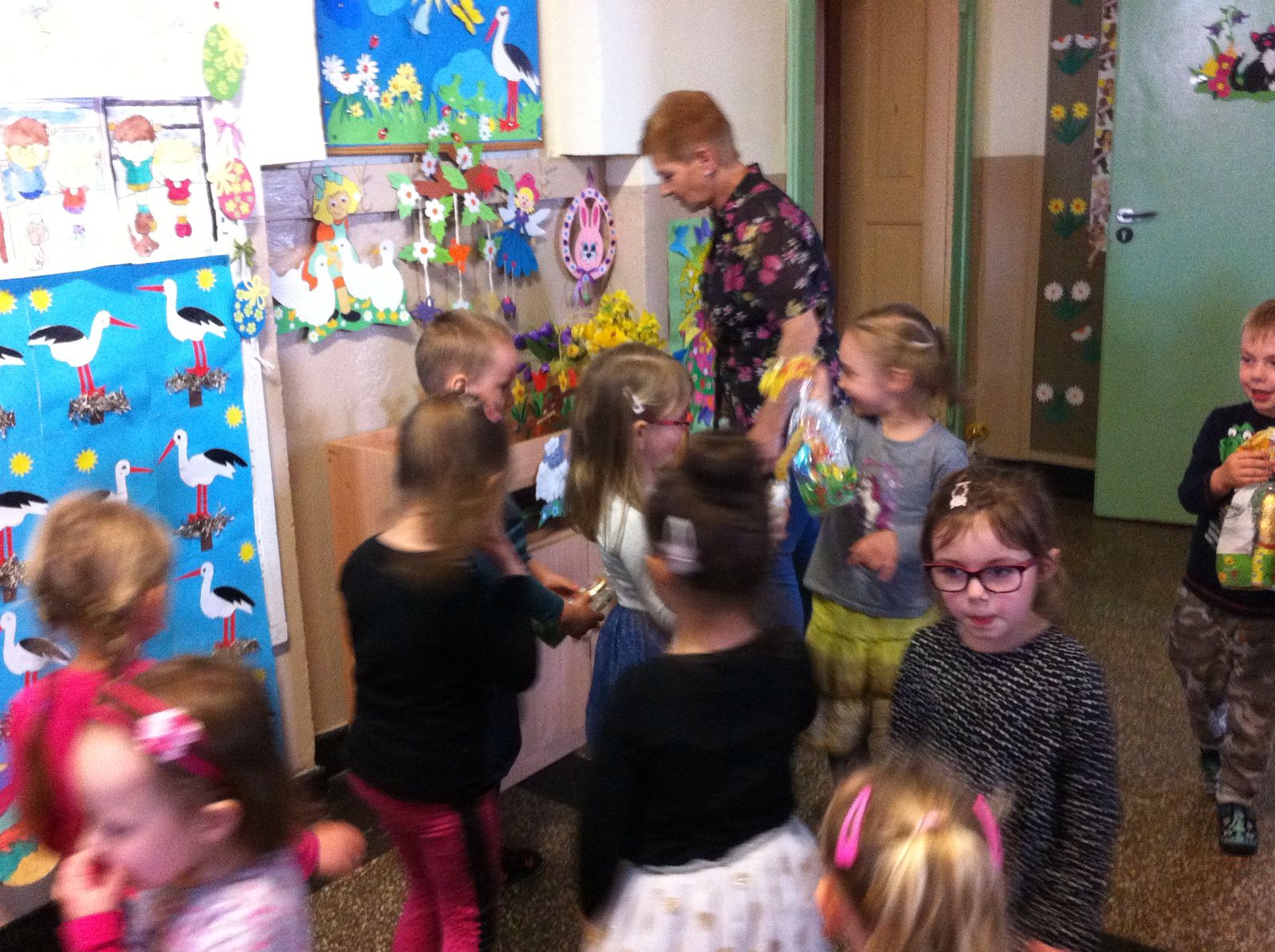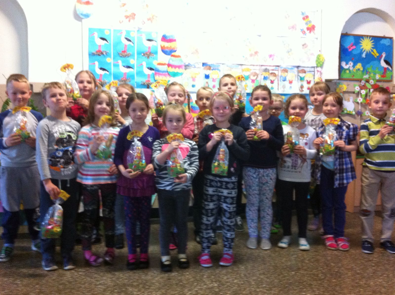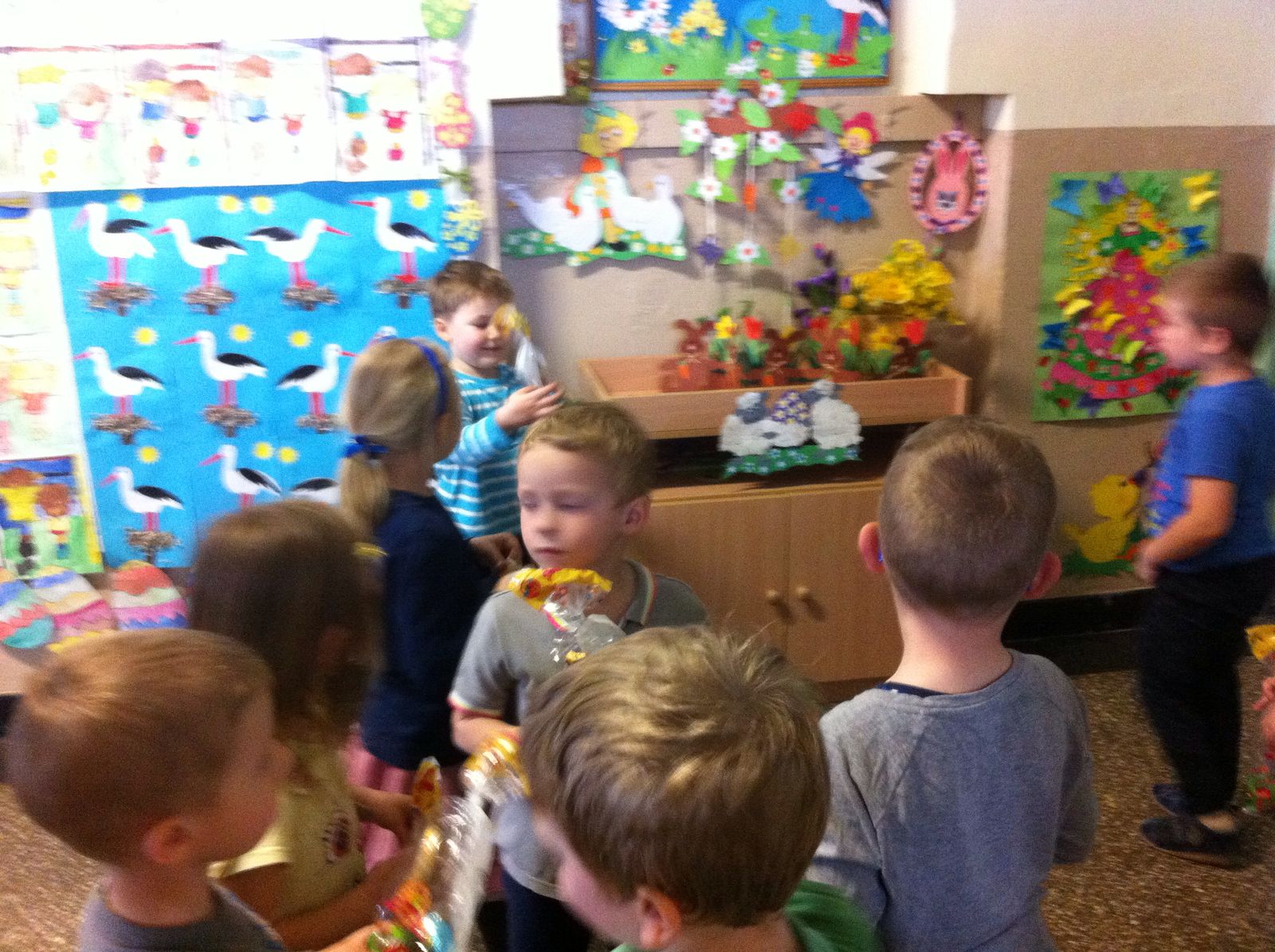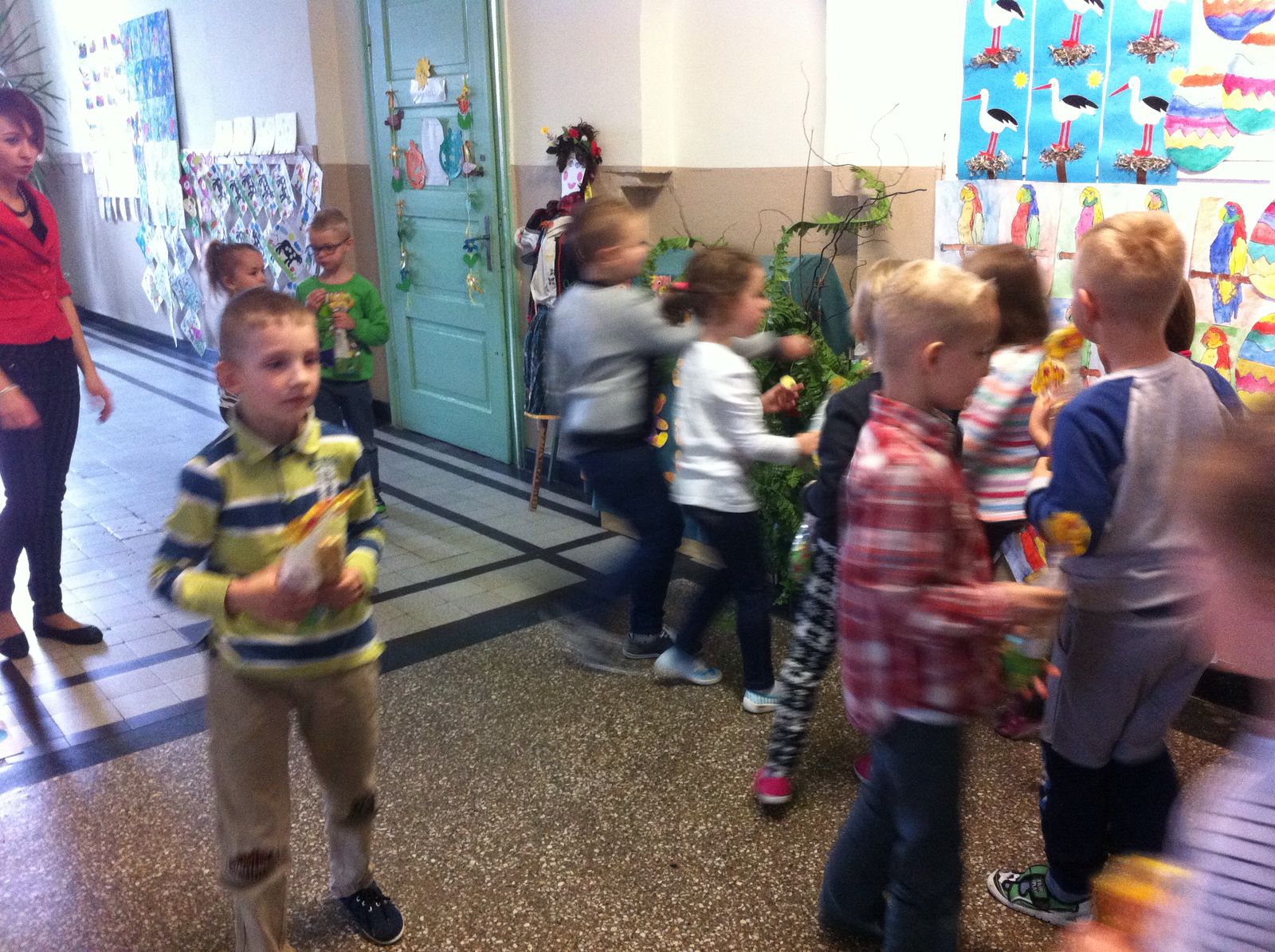 Ze względu na chłodną, deszczową pogodę tegoroczne poszukiwania odbyły się na przedszkolnych korytarzach, było mnóstwo emocji i zabawy.