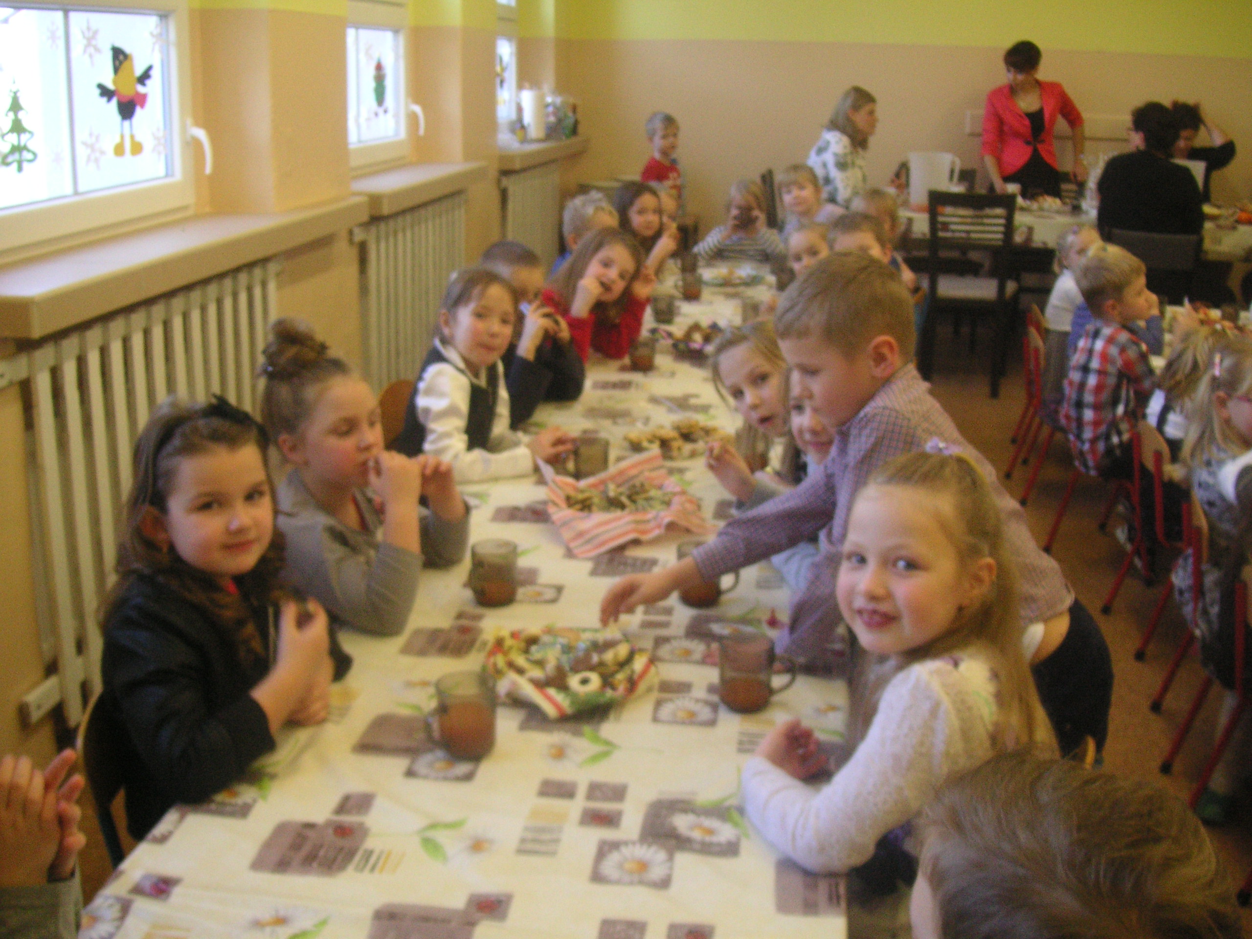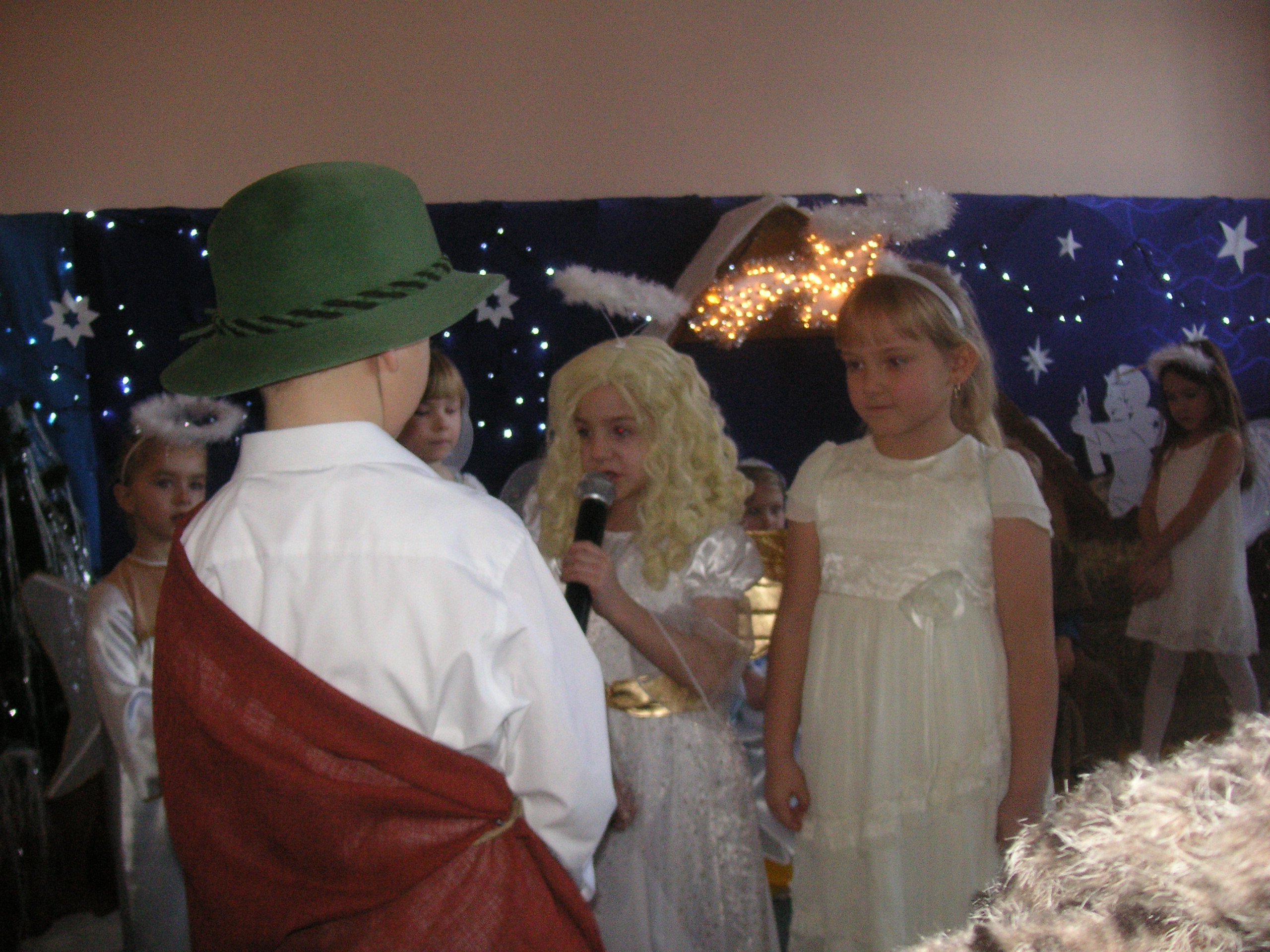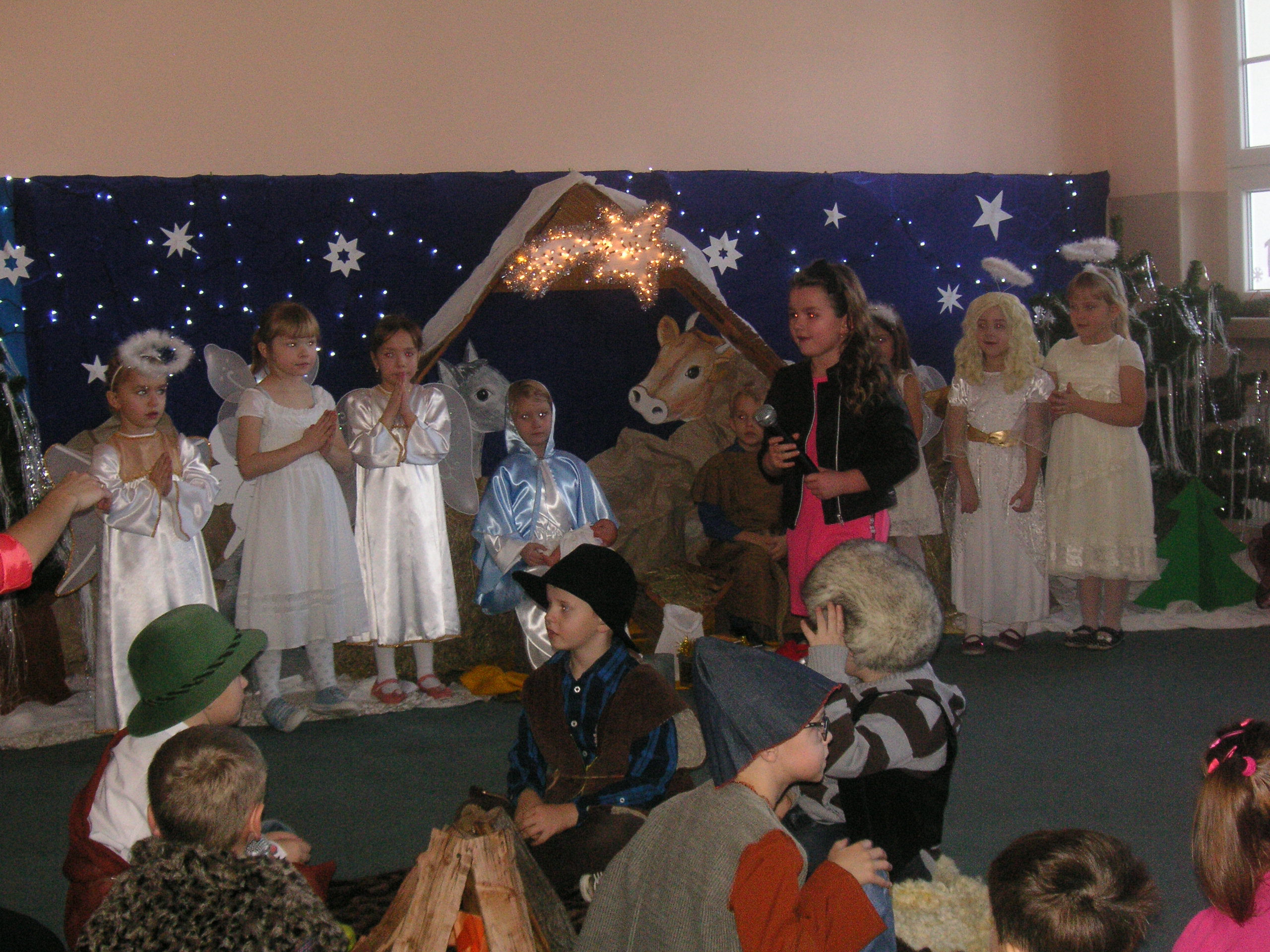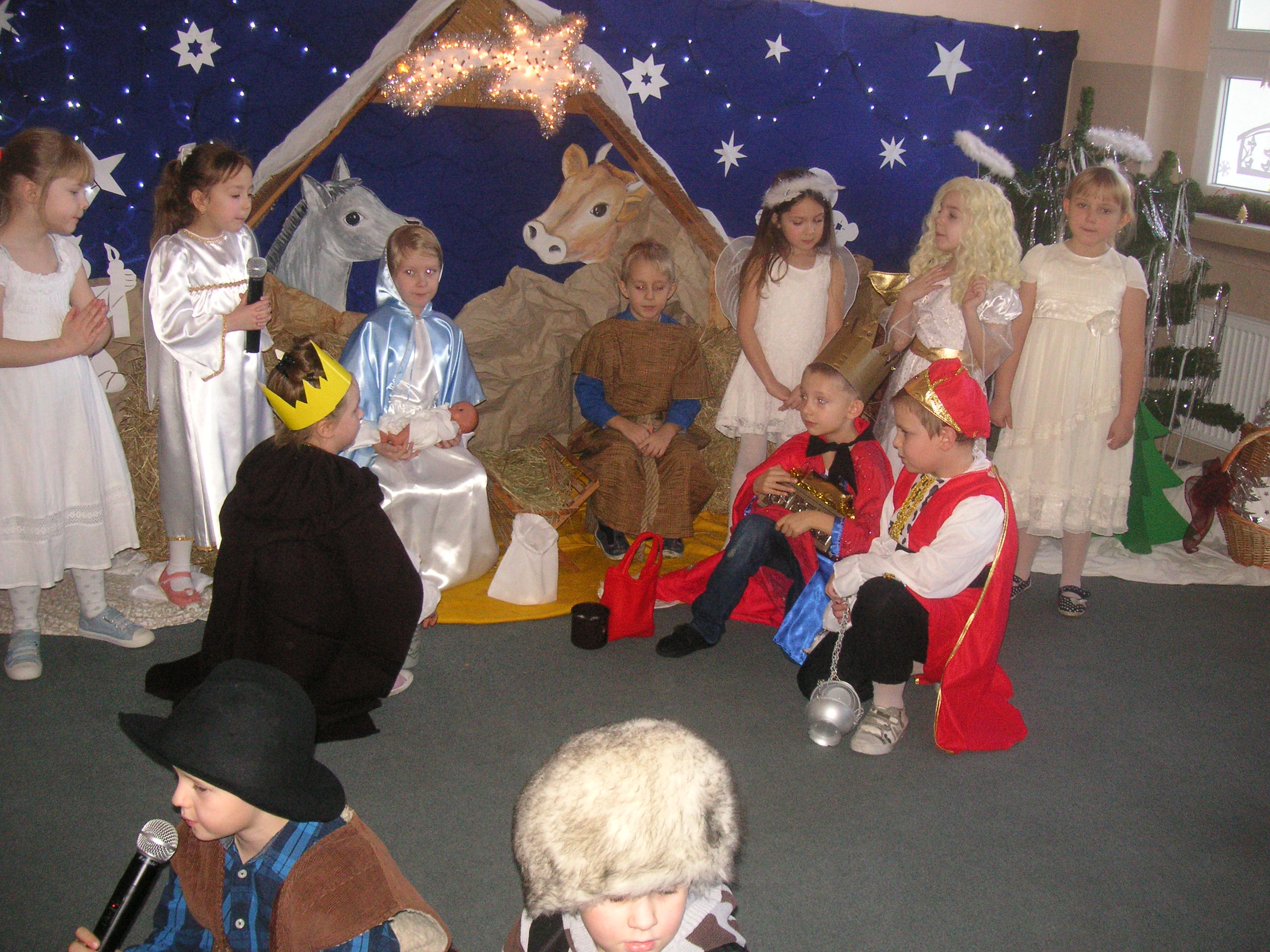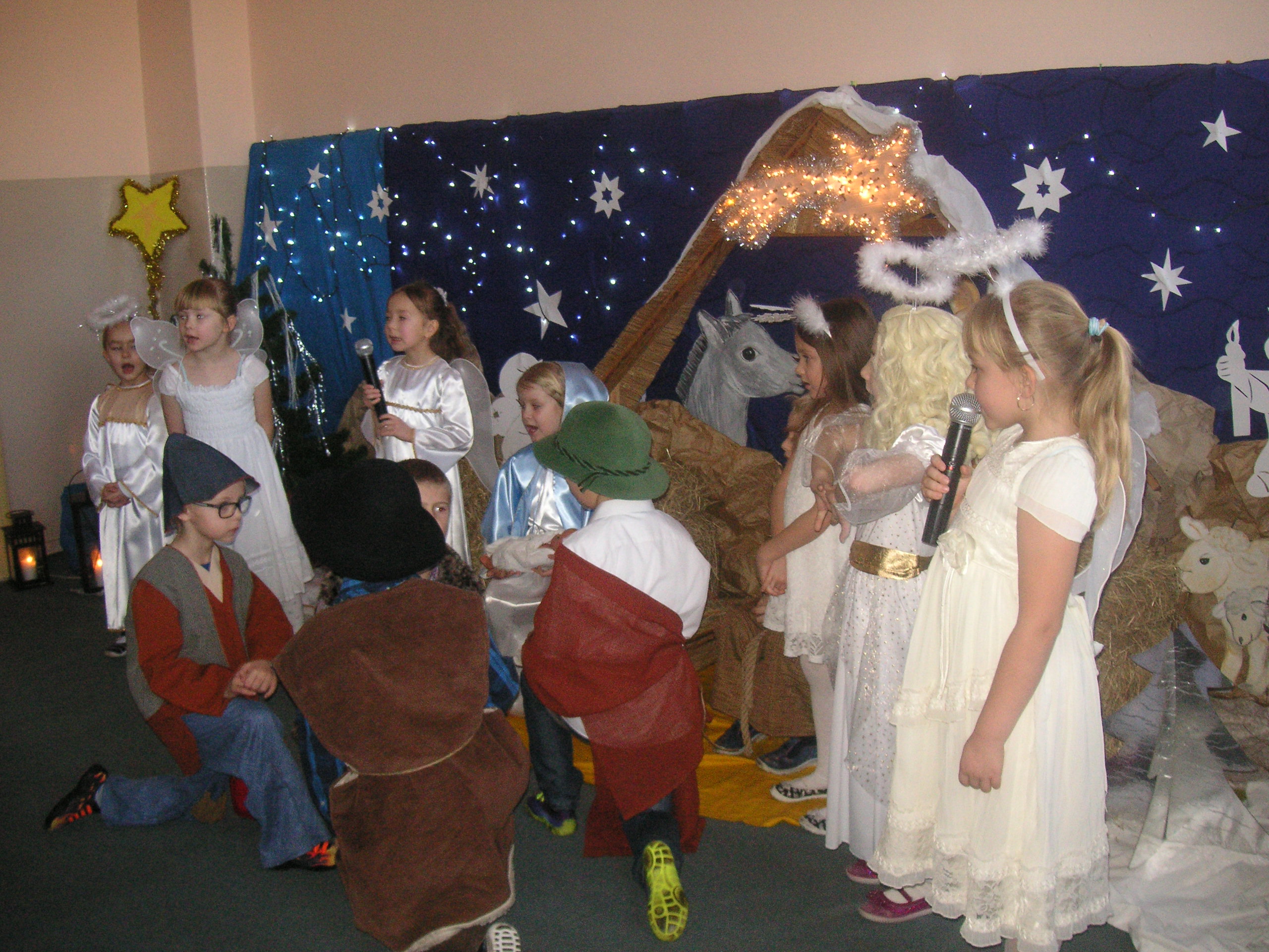 Coroczne międzygrupowe spotkanie wigilijne uświetniły występy sześciolatków prezentując ,,Jasełka” w swoim wykonaniu. Później zaśpiewały świąteczną piosenkę dzieci z grupy pięciolatków. Na koniec były świąteczne życzenia, śpiew pastorałek i popularnych kolęd oraz drobne upominki i laurki. Spotkanie zakończyło się wspólnym poczęstunkiem przy świątecznych ciasteczkach. Było miło i radośnie, a nastrój oczekiwania udzielał się wszystkim uczestnikom.