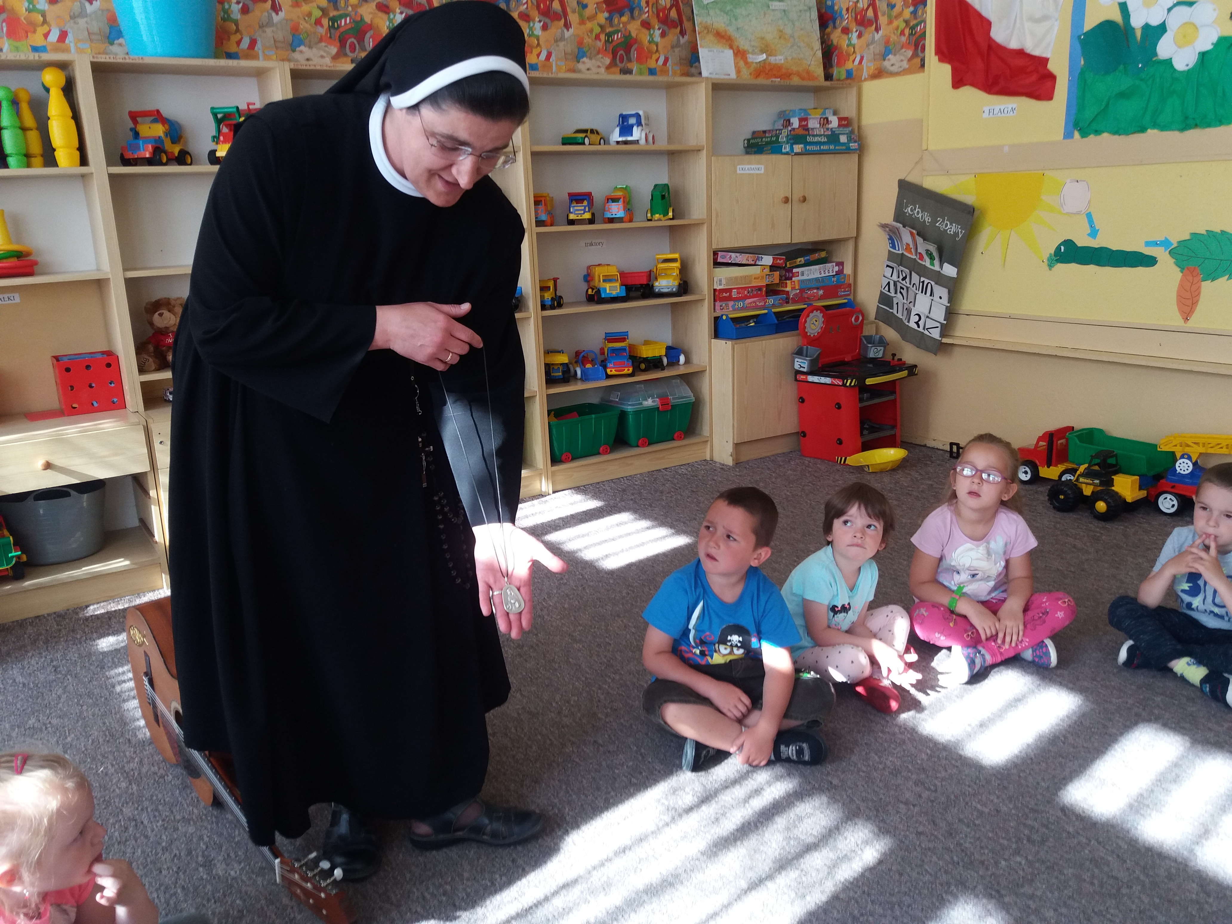 Siostra Tobiasza ze Zgromadzenia Sióstr św. Elżbiety odwiedziła dzieci w Bojanowie. Przedszkolaki z uwagą słuchały opowiadań siostry Tobiaszy na temat jej stroju, dowiedziały się też kim była św. Elżbieta. Dzieci nauczyły się kilku piosenek i tańców .