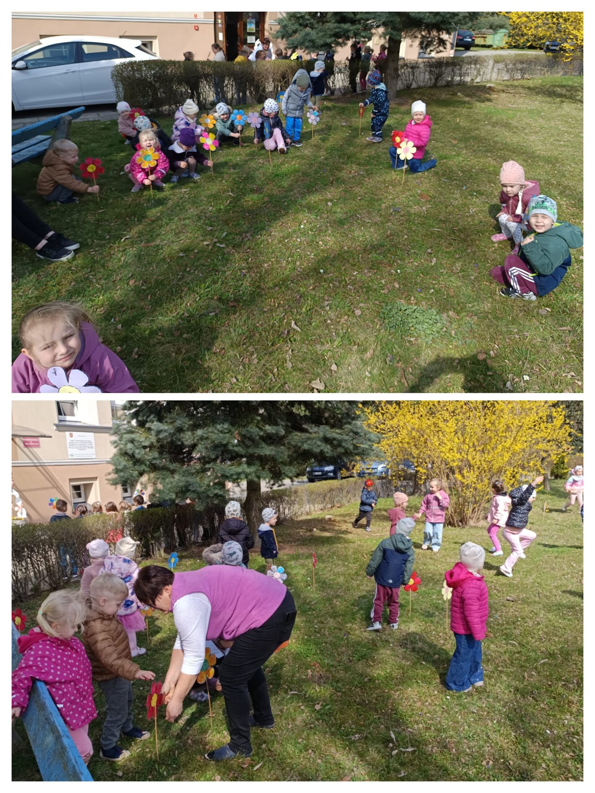 Dzieci zaraz się zebrały, piękne kwiaty wysiewały.