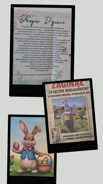 Zając Wielkanocny w drodze zaginął, do Was, dzieci, jeszcze nie dotarł nie miło,